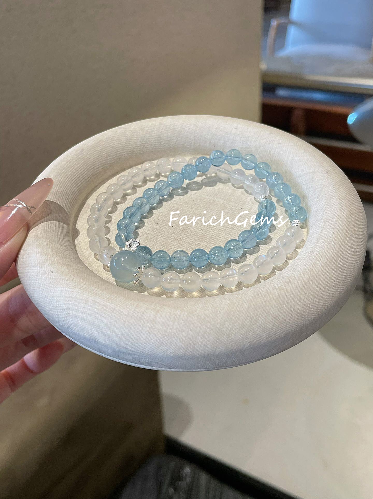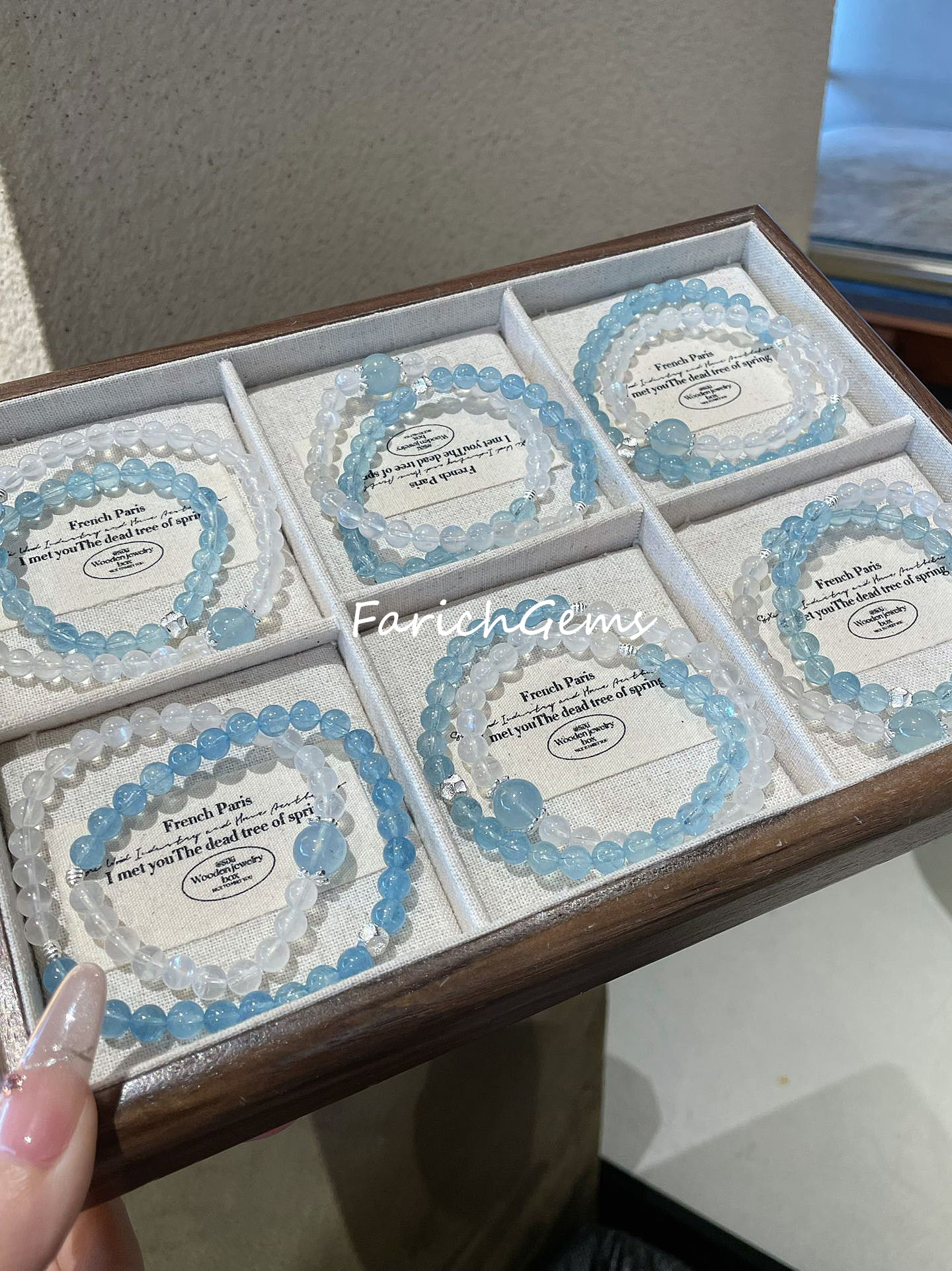 Double Wrap Blue Moonstone Aquamarine Beaded Crystal Bracelet 6mm