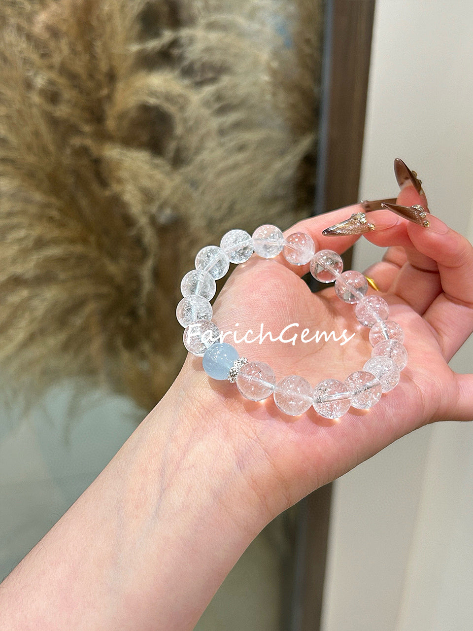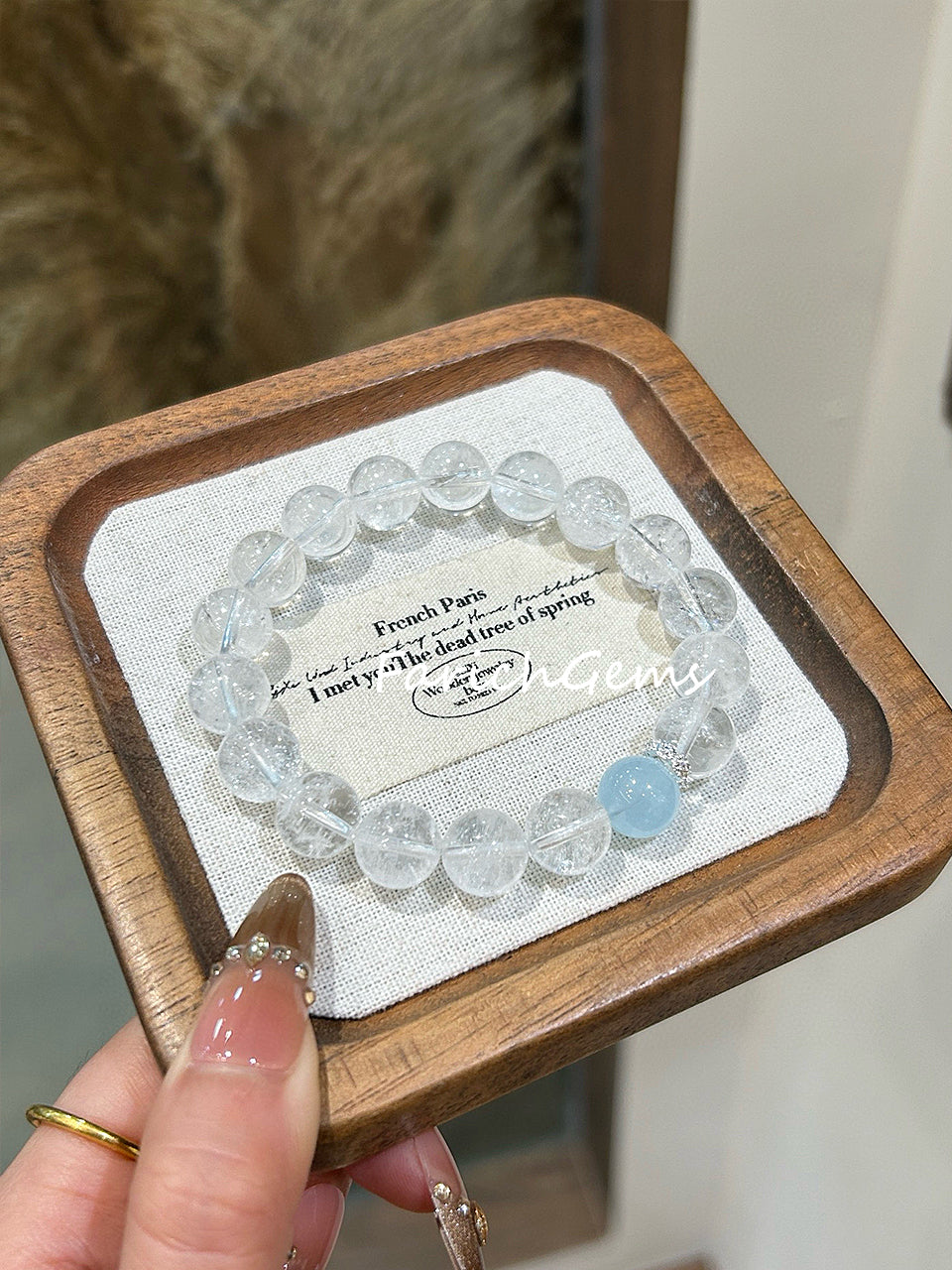 Clear Azeztulite Quartz Aquamarine Beaded Crystal Bracelet 10mm