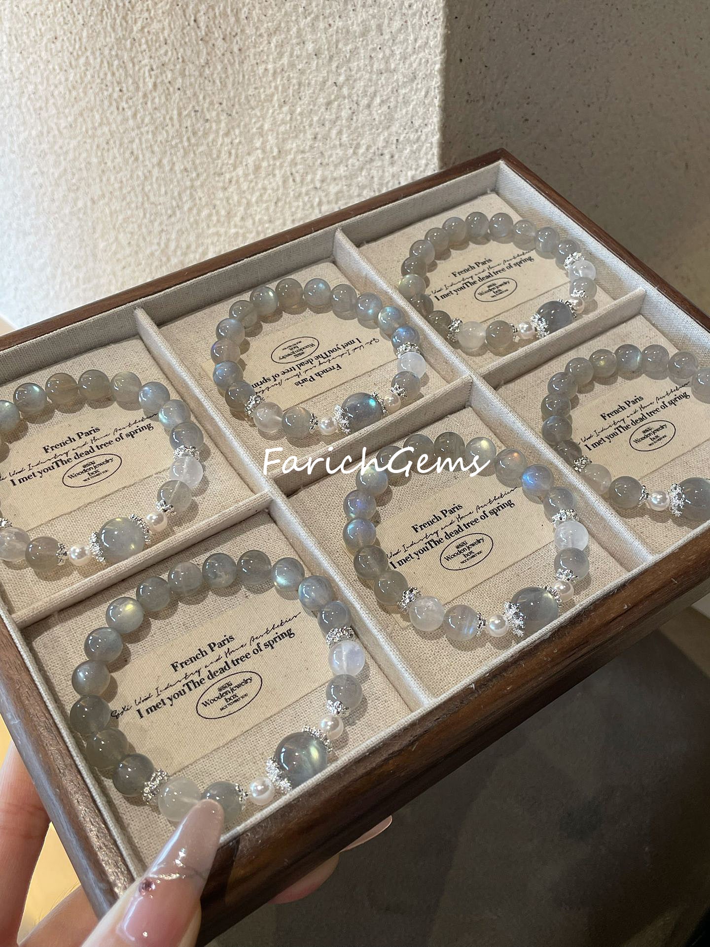 Gray Moonstone Blue Moonstone Beaded Crystal Bracelet 9mm