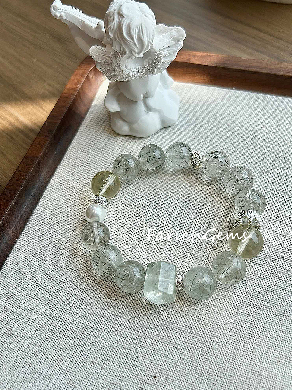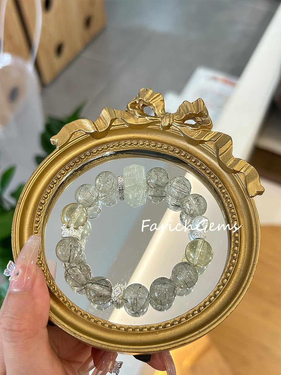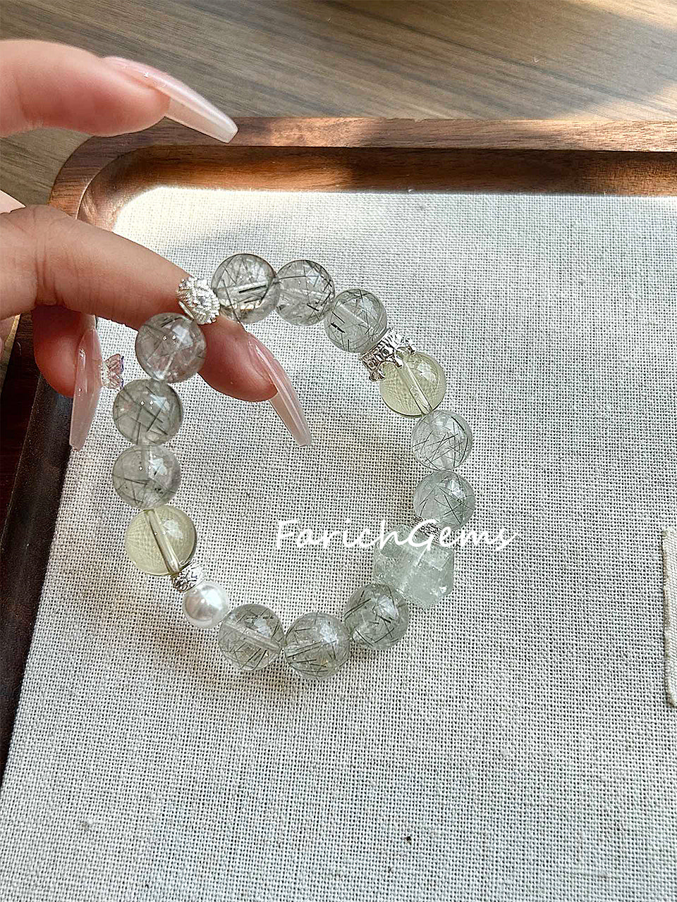 Green Rutilated Quartz Citrine Beaded Crystal Bracelet 11+12mm