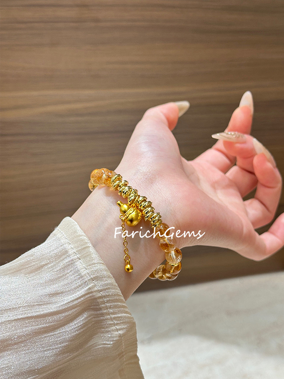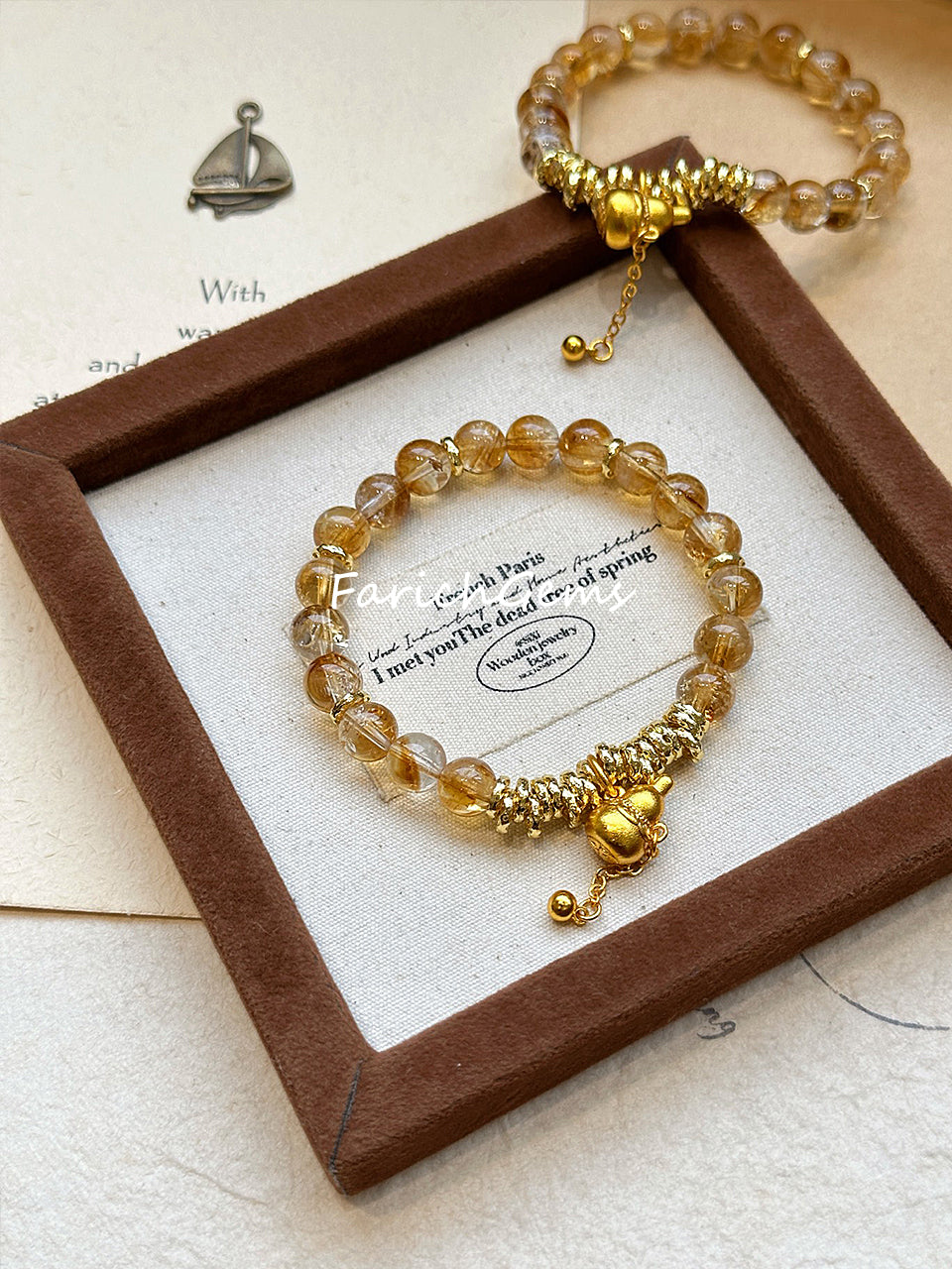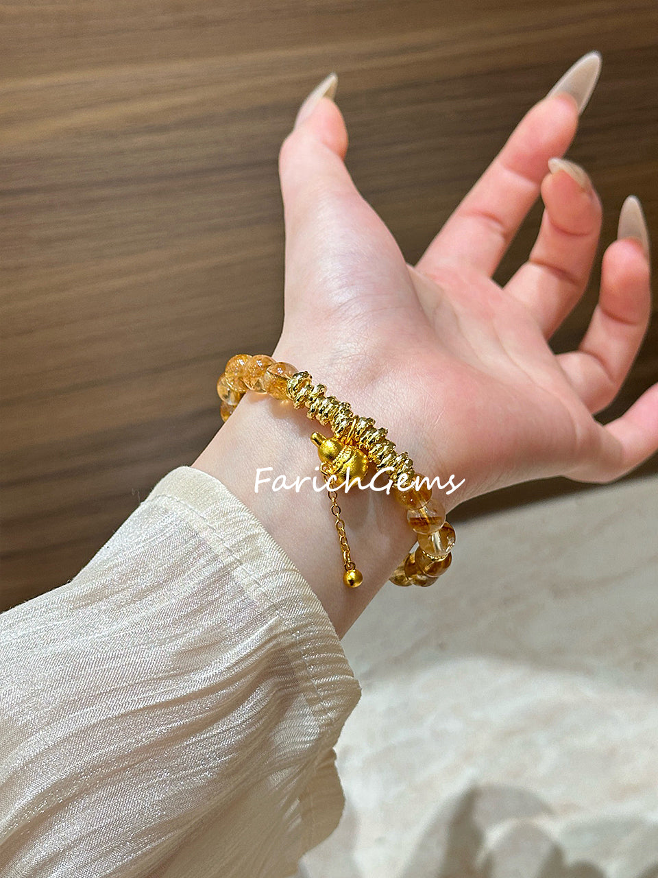 Citrine Quartz Copper Accessories Beaded Crystal Bracelet 7mm+