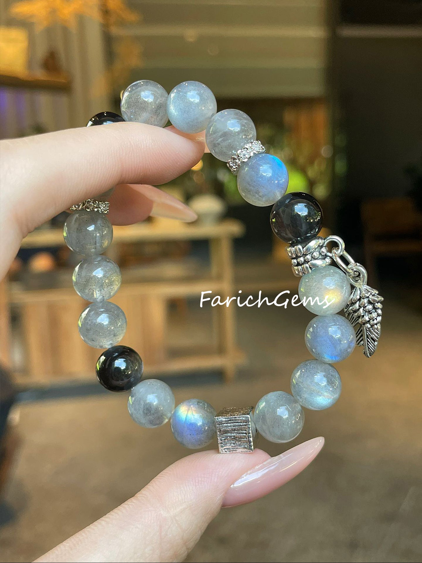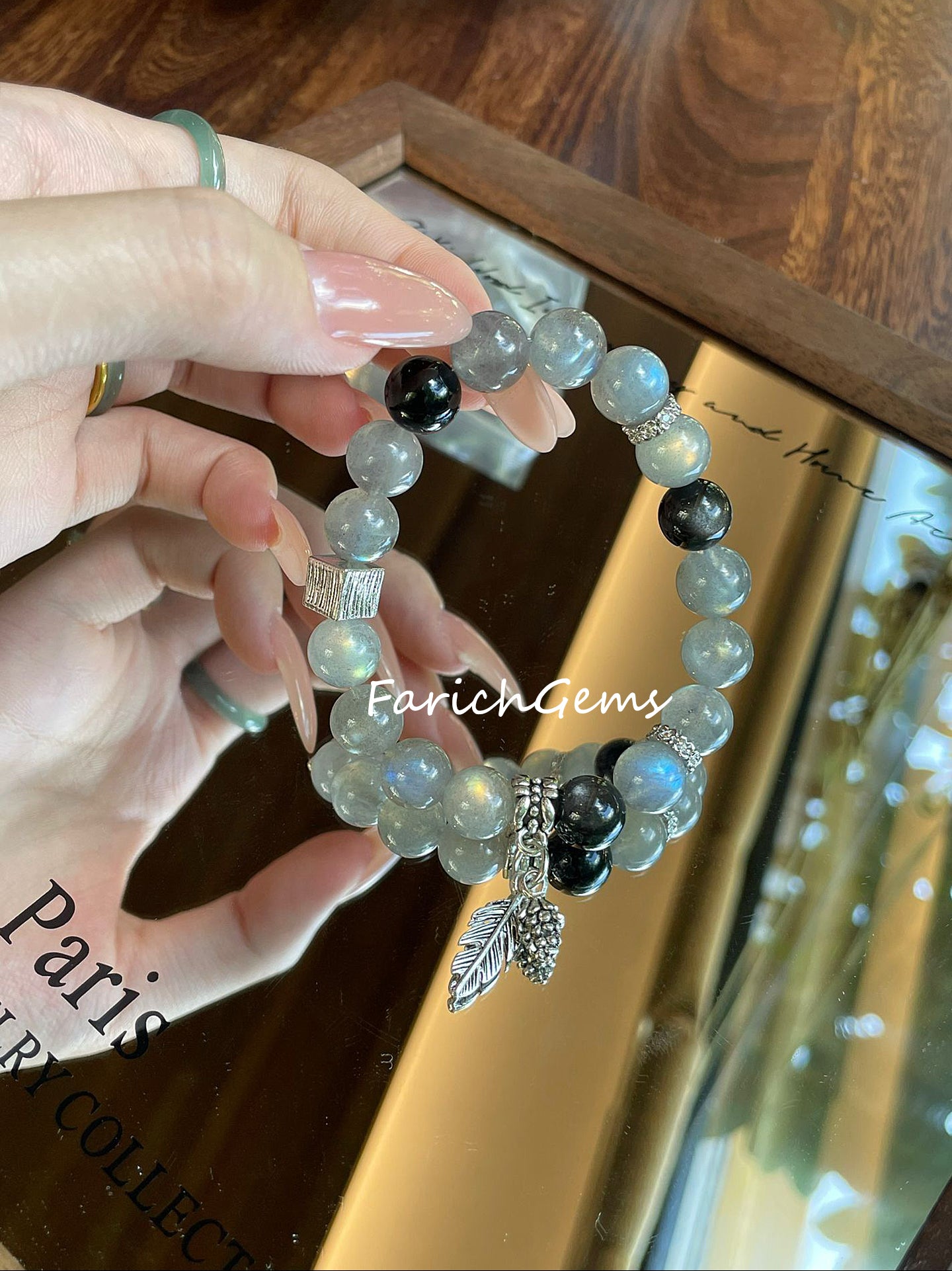 Gray Moonstone Silver Obsidian Beaded Crystal Bracelet 10mm