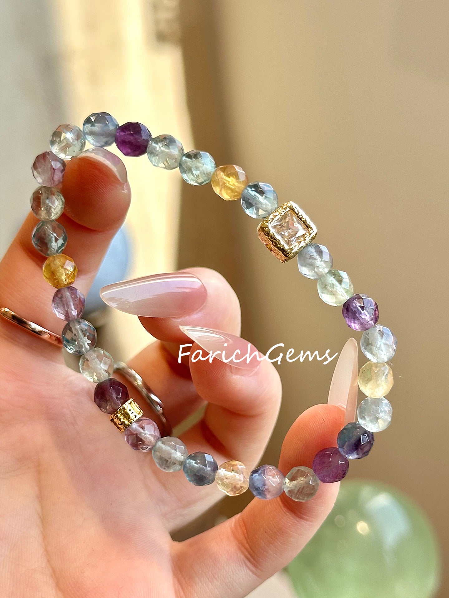 Natural Rainbow Fluorite Beaded Crystal Bracelet 6mm