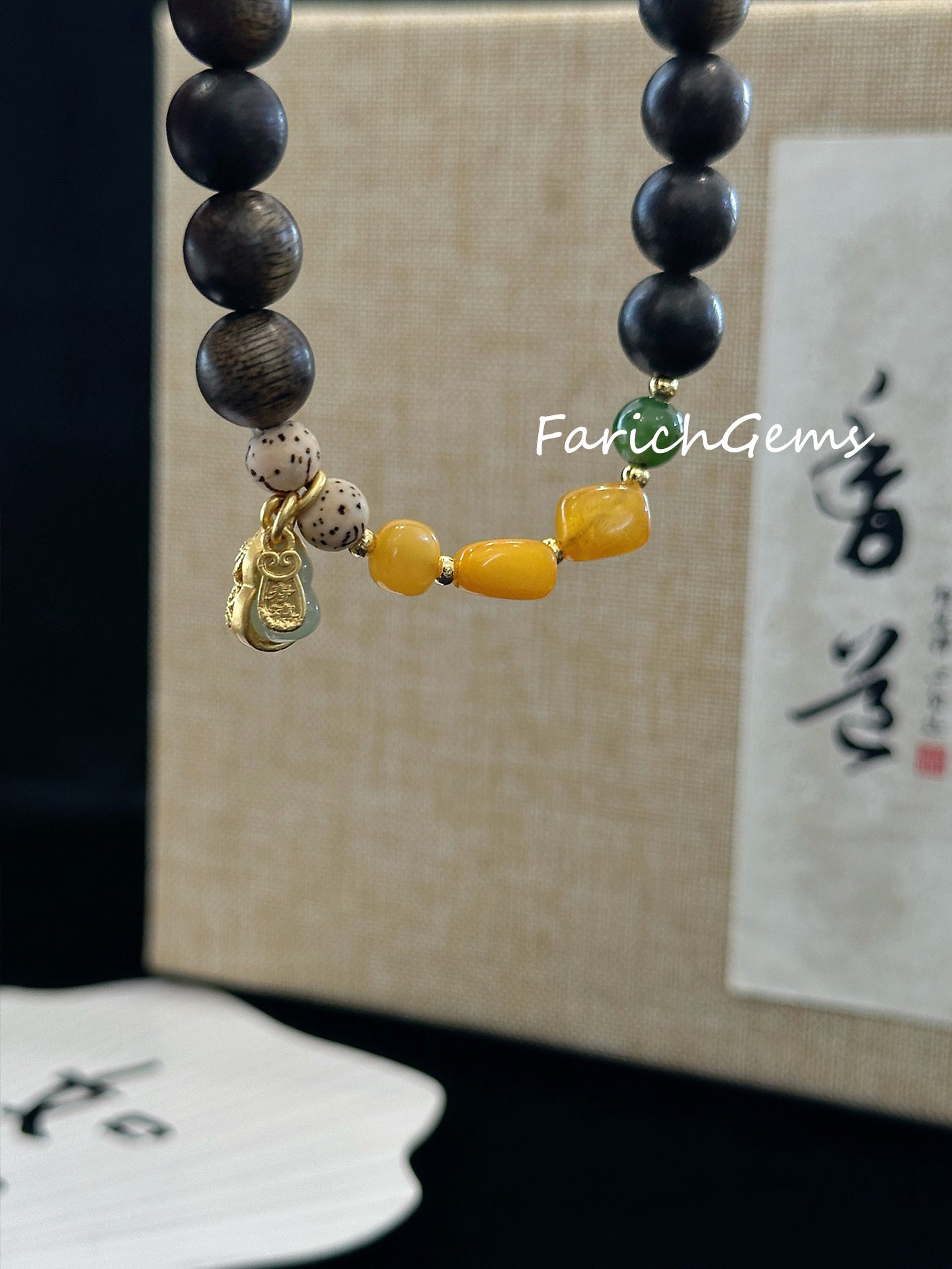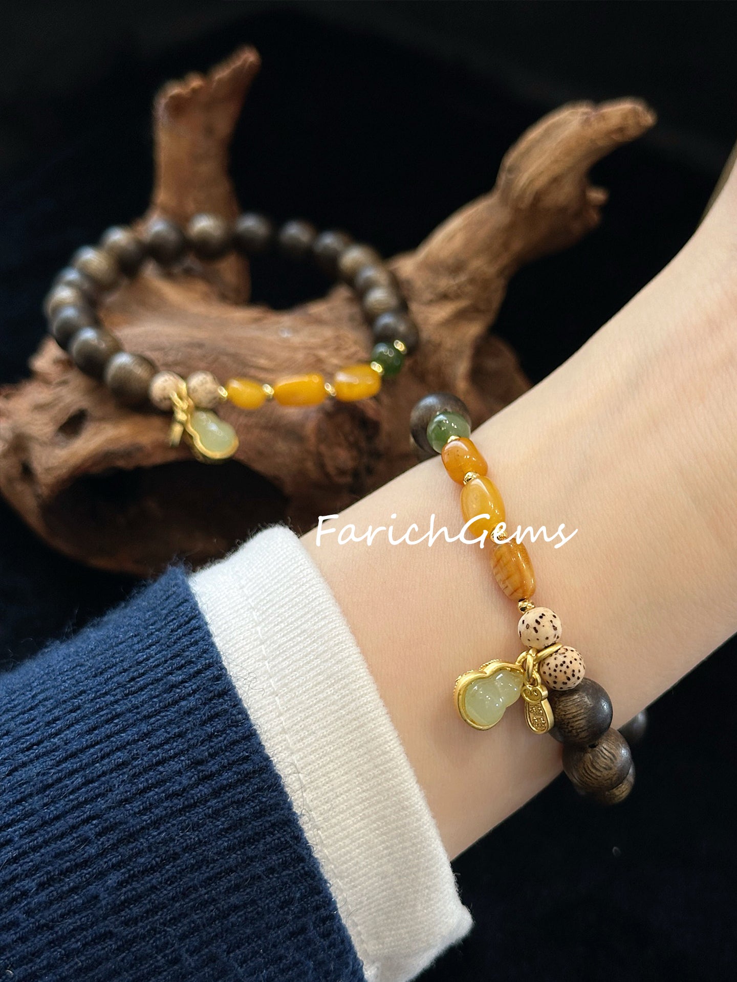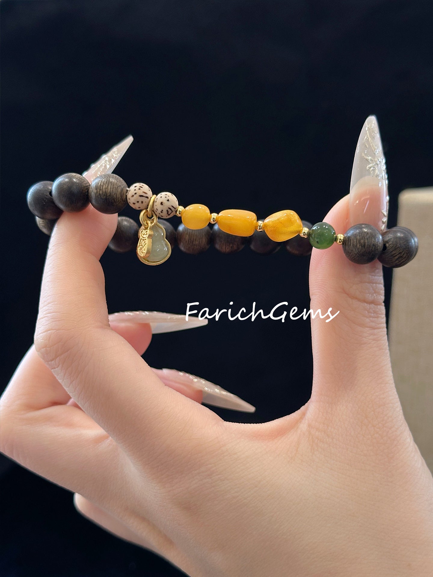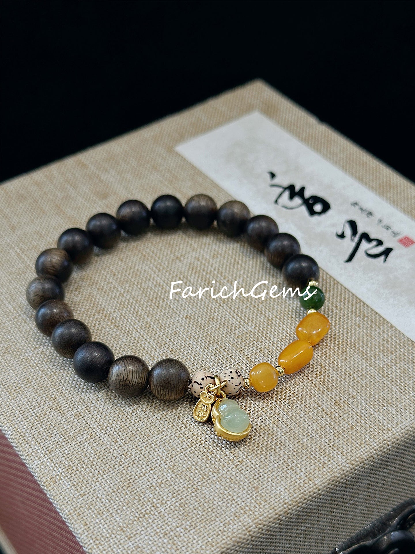 Agarwood Amber Nephrite (Hetian Jade) Beaded Crystal Bracelet 8mm