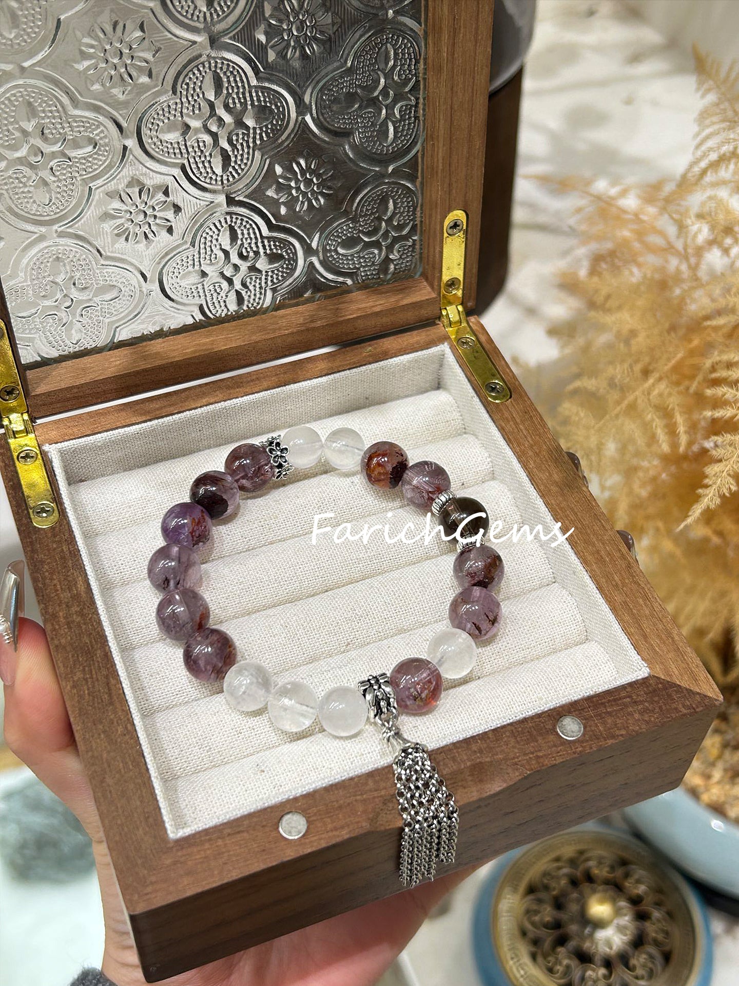 Purple Phantom Quartz Smoky Quartz Blue Moonstone Beaded Crystal Bracelet 10+9mm