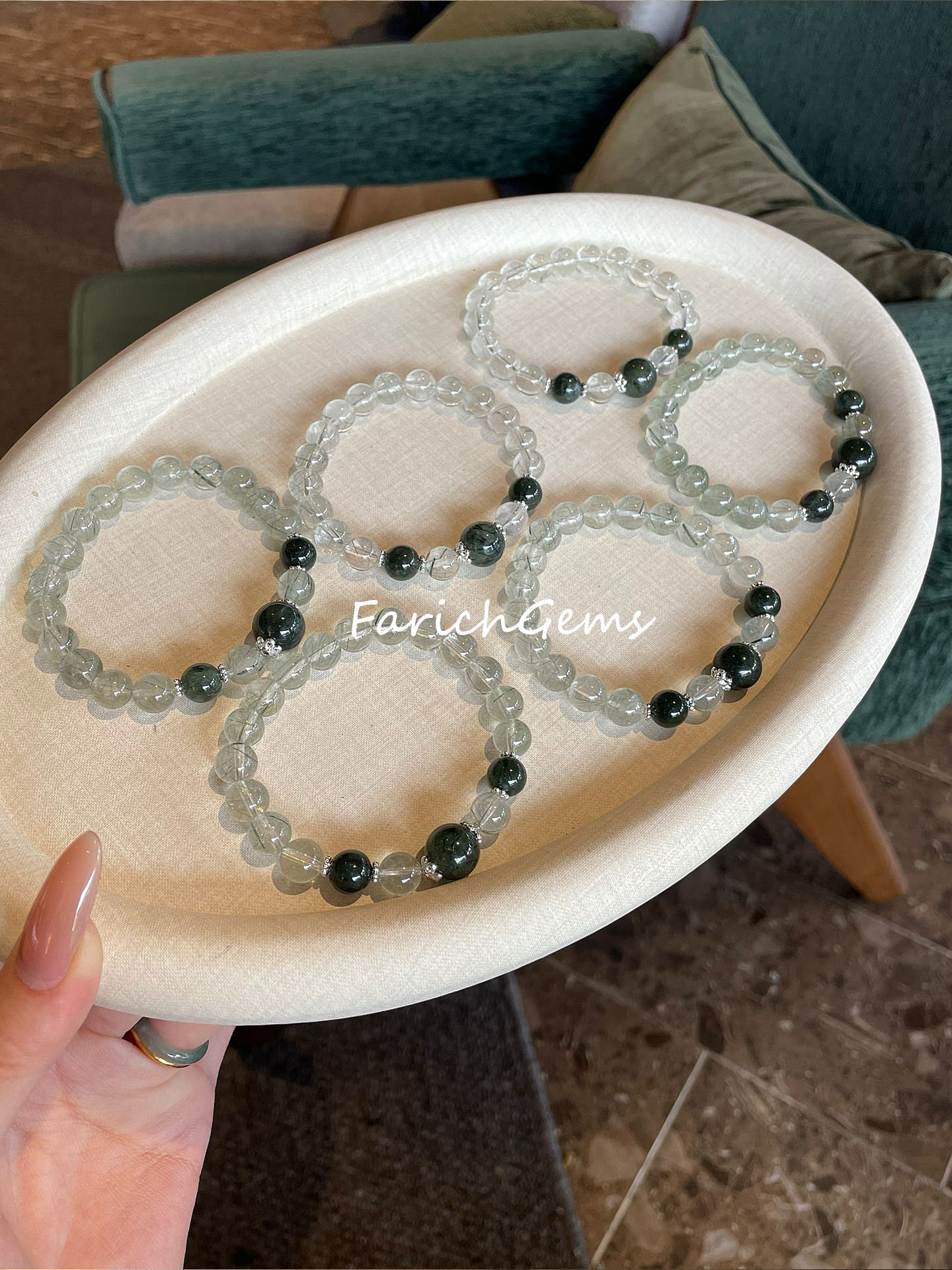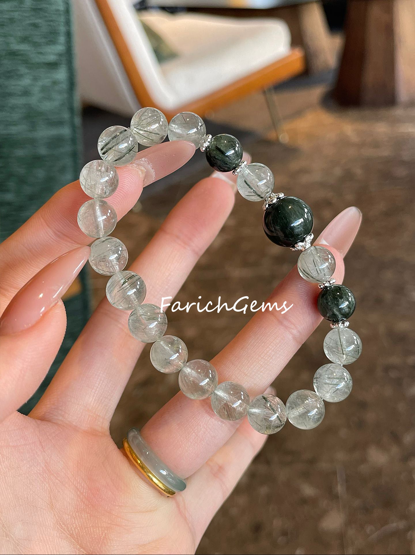Ice-clear Green Rutilated Quartz Beaded Crystal Bracelet 8+11mm