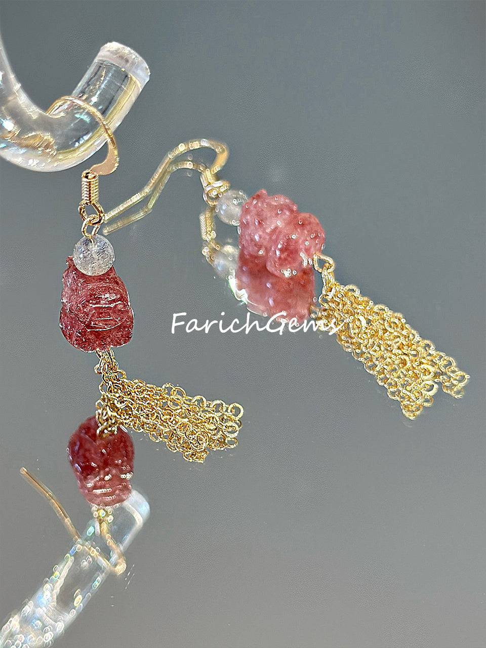 Pi Xiu Shaped Strawberry Quartz Copper Accessories Fringe Earring